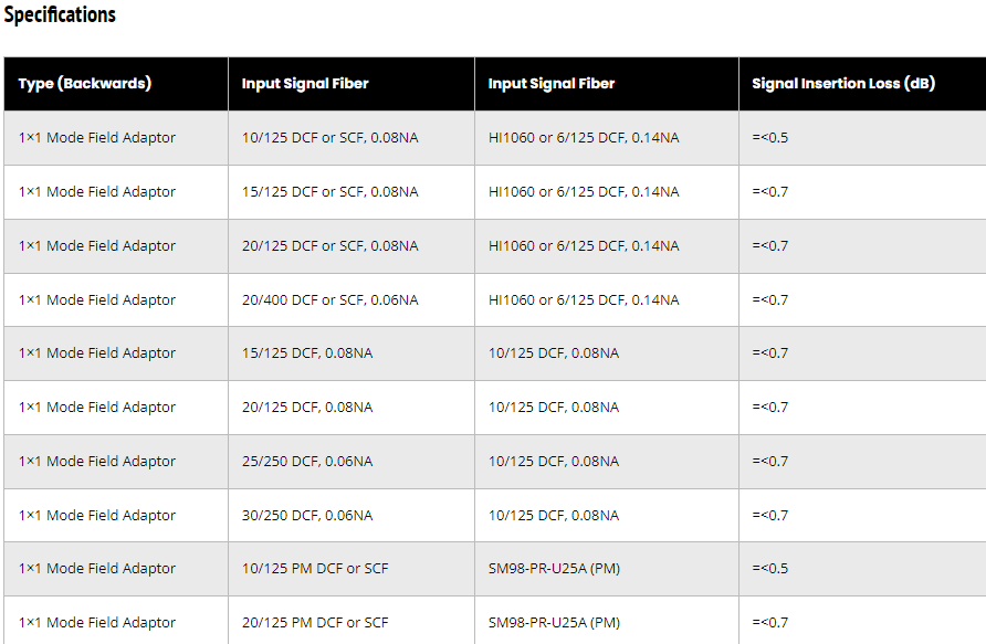 Mode Field Adapter (MFA) (Backward Version)